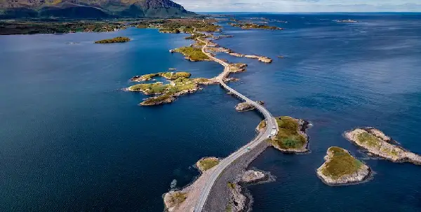 Norway’s Atlantic Ocean Road stretches between the towns of Kristiansund and Molde, linking small islands with a series of bridges over the open sea. Known for its curved design and exposure to waves and wind, the road is considered one of the world’s most scenic coastal drives. It has become a major road-trip attraction.
